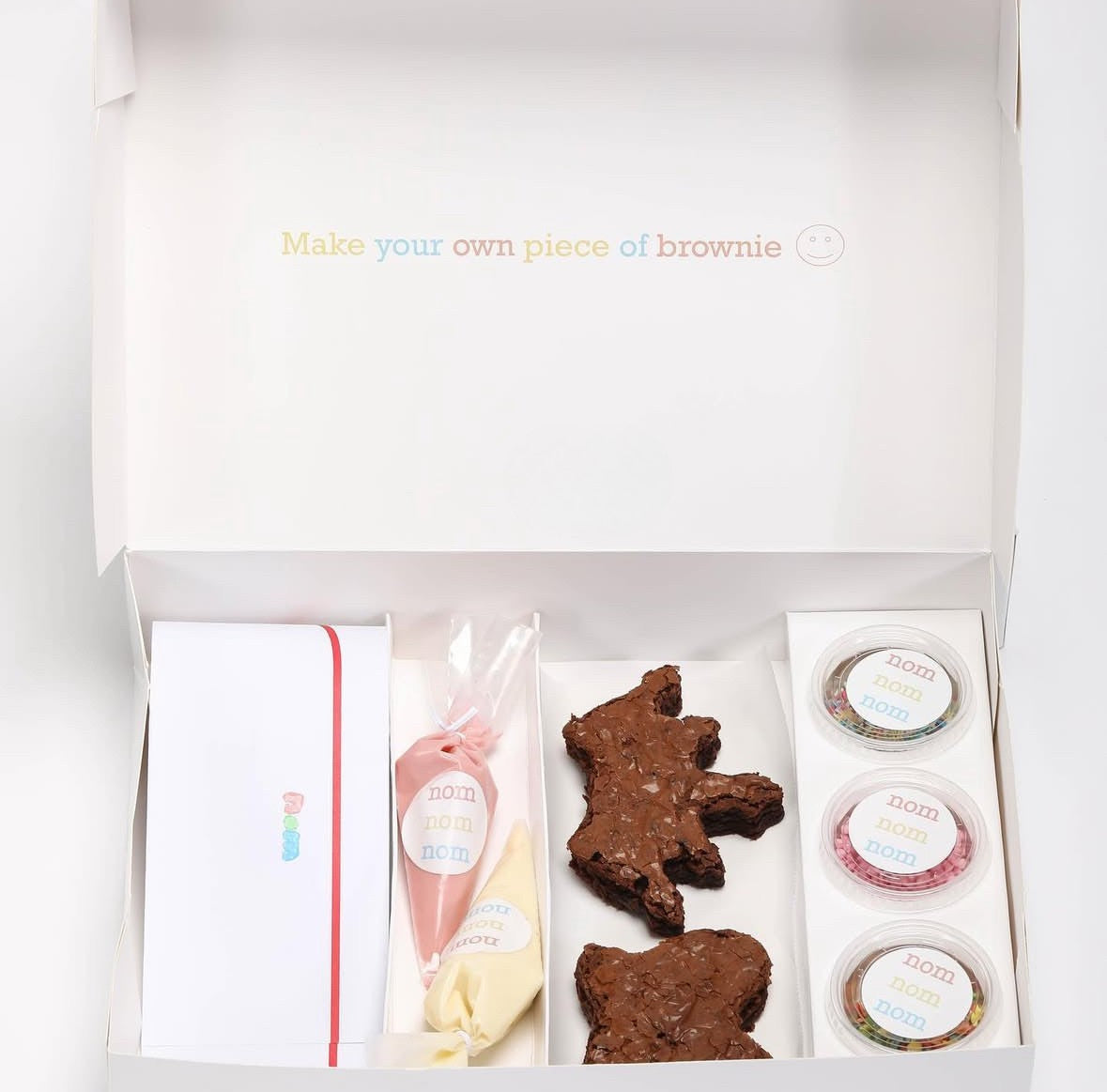 Bring smiles to every kid’s party with Nom Nom Nom, our fun and colorful brownies made just for kids. Each box includes shaped brownies topped with creamy pink or blue frosting and colorful sprinkles. Perfect for birthdays, school events, and UAE National Day celebrations.